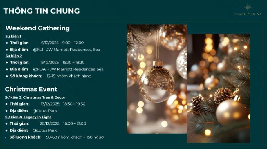 🎁Grand Marina, Saigon is also pleased to welcome you to “The First Glow” event,happening on on Dec 6th at the Sea tower, an experience to embrace the festive spirit and create cherished holiday memories at this signature residential destination.