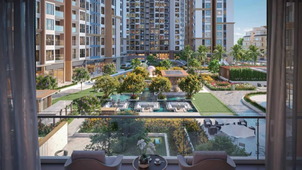 • Dự án tích hợp trung tâm thương mại, cung cấp đầy đủ dịch vụ mua sắm, ẩm thực và giải trí ngay trong khuôn viên, giúp cư dân tận hưởng cuộc sống tiện nghi mà không cần di chuyển xa.