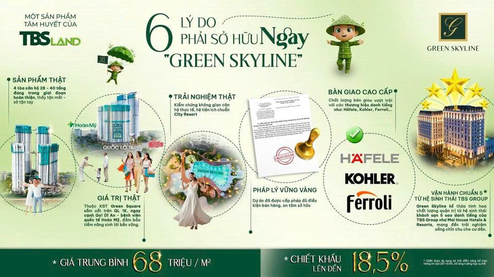 Trong bối cảnh thị trường ưu tiên giá trị thực và tính minh bạch, Green Skyline đang mở ra cơ hội hiếm có để sở hữu một không gian sống xứng tầm được kiểm chứng bằng sản phẩm thật – giá trị thật – trải nghiệm thật, được bảo chứng từ uy tín chủ đầu tư TBS Land.